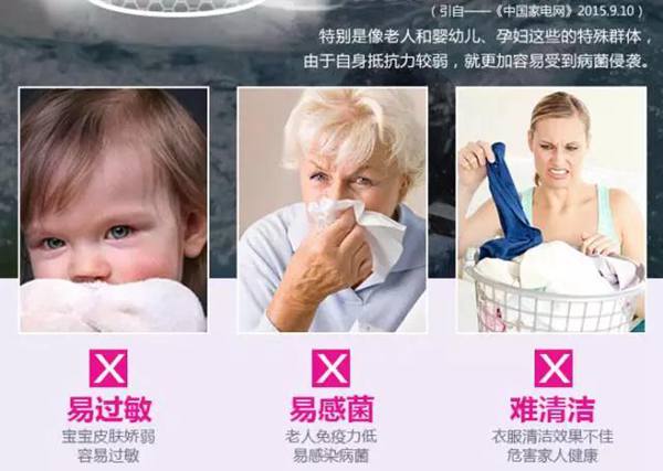 這些滋生的細菌、真菌不但會污染衣物,還會通過衣服二次污染,對婦女和小孩危害*。